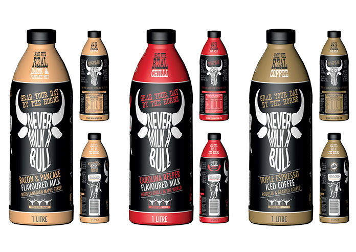 With flavours like Bacon & Pancake With Canadian Maple Syrup, Carolina Reeper Hottest Chilli In The World and Triple Espresso Robusta & Arabica Coffee, these aren’t targeted towards children. The name was chosen as a tongue-in-cheek bit of fun. Being of its controversial nature, it’ll get people talking. The design is masculine. Colours were chosen to represent the flavours on offer. I wanted to steer clear of the regular flavours sold in flavoured milk varieties. My flavours are over the top and slightly crazy. A good dose of humour was incorporated into the copy on the bottle.